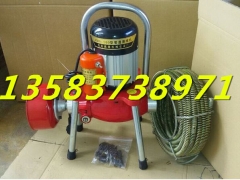 (简明解释:管道疏通机的使用方法其实就是借助电力和启动的机器驱使插进下水管道的疏通弹簧逐步向前甩动的疏通方式,去取代单纯靠人力辛苦地去捅下水管道进行管道疏通的一种方法。本机配备、使用的有Φ10mm弹簧和Φ16mm两种口径的疏通弹簧。其中:Φ10mm弹簧装在红色的滚筒仓里。Φ16mm弹簧装在弹簧筐里。使用Φ16mm弹簧时应取下装在机器上的红滚筒,同时从装红滚筒仓的位置穿过Φ16mm弹簧,并且要根据疏通的要求在弹簧上加装适当的刀头。